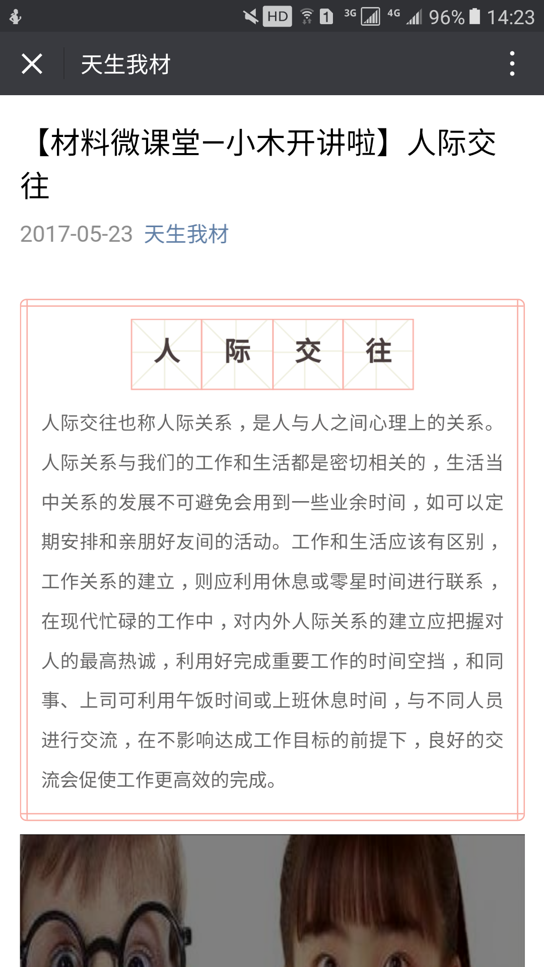 近日,葡京娱乐场 心理工作站及校朋辈咨询队成员吴俊在院官方微信平台——“天生我材”上发布了有关人际交往方面知识的心理微课堂,引起了同学们的广泛关注。本次心理微课堂主要向同学们介绍了人际交往相关概念和知识。