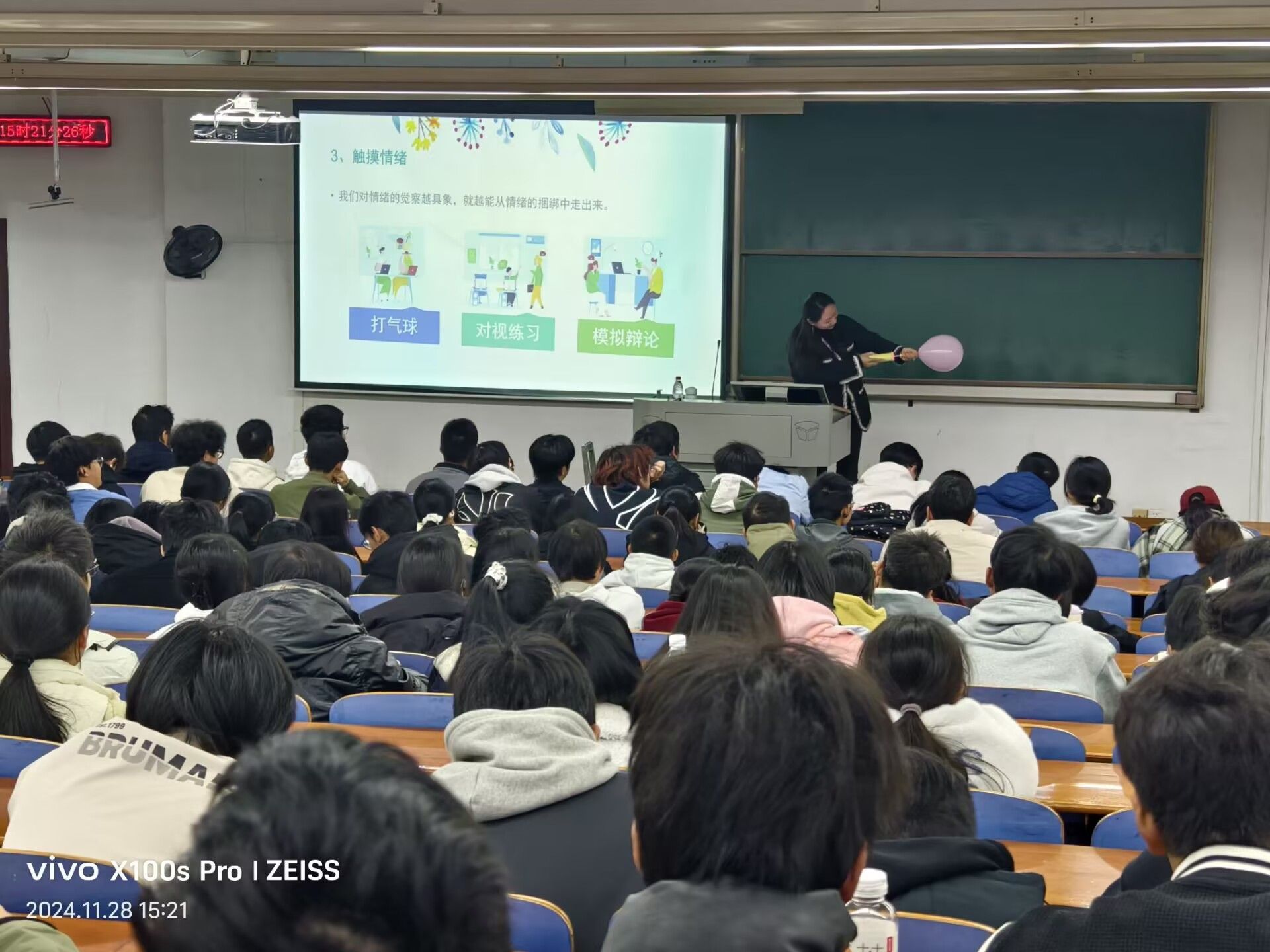 接着,袁教授介绍了一些简单实用的情绪调节方法,如深呼吸、冥想、运动、音乐等。还通过现场互动的方式,让学生们亲身体验了这些方法的效果。此外,她还强调了积极心态的重要性,鼓励学生们在面对困难和挫折时,要保持乐观向上的心态,相信自己一定能够克服困难。袁教授还提醒学生们要注意自己的心理健康,如有压力和无法疏解的情况,要及时前往学校心理咨询中心寻求帮助。