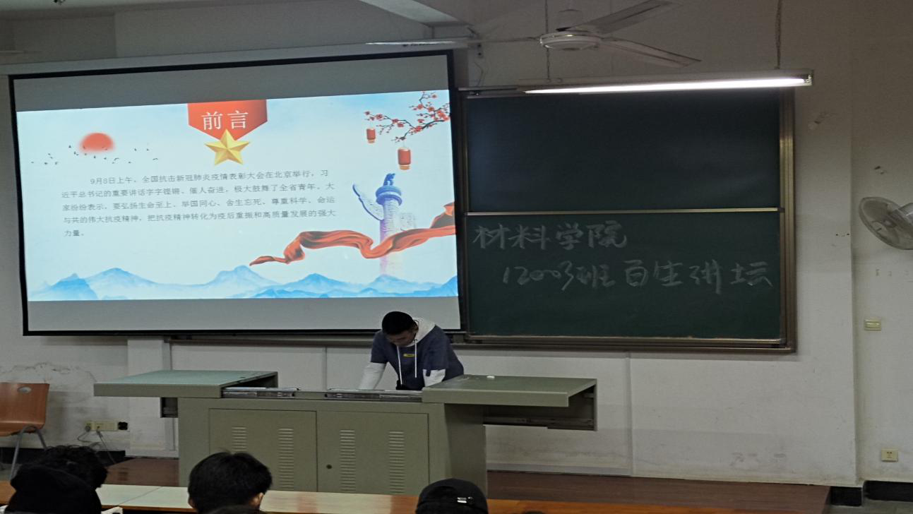 各班团支部组织开展与“百生讲坛”主题团日活动。此次活动主要围绕十九届五中全会、脱贫攻坚、抗疫精神等主题展开,各班团员积极参加、深入学习。