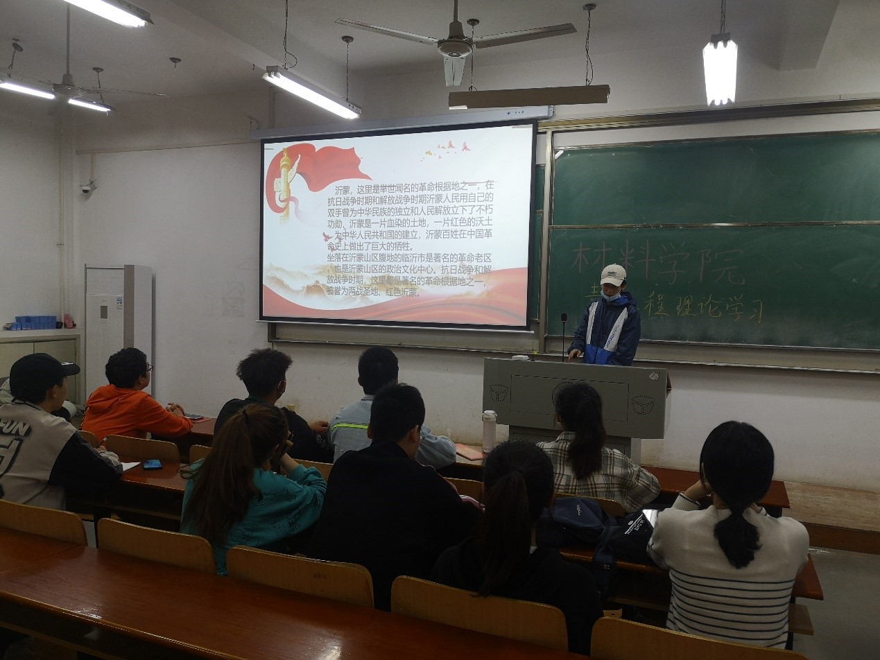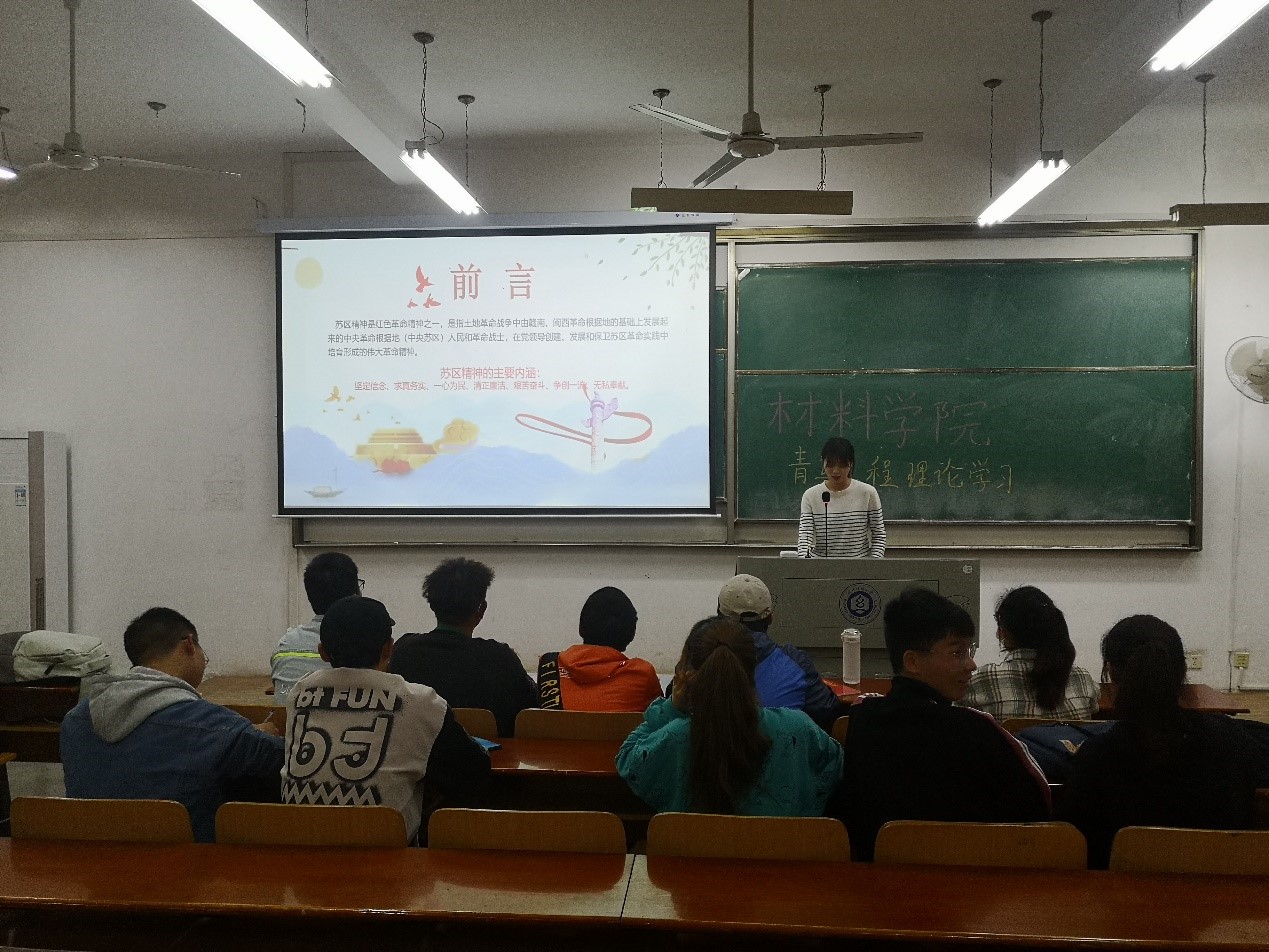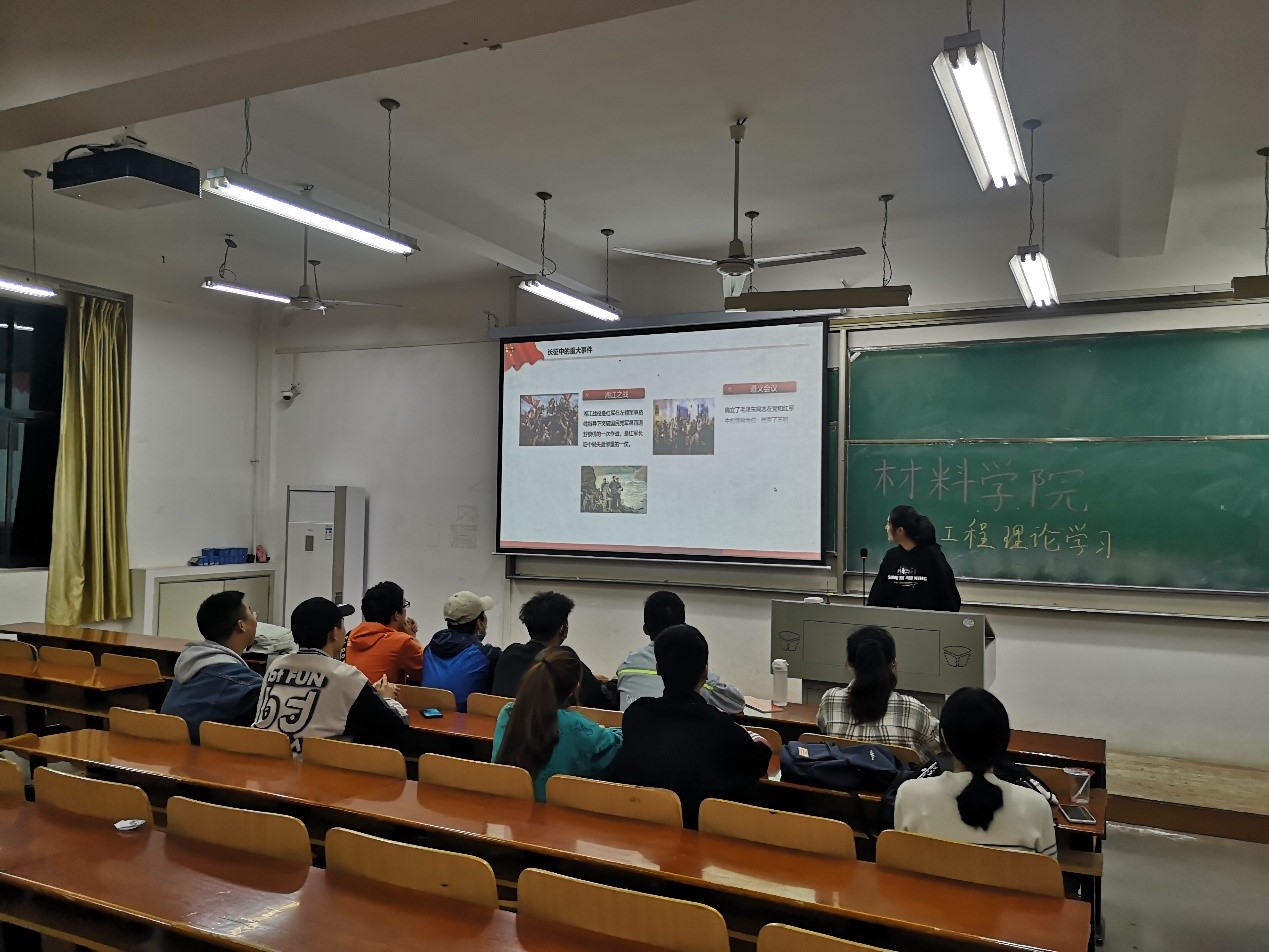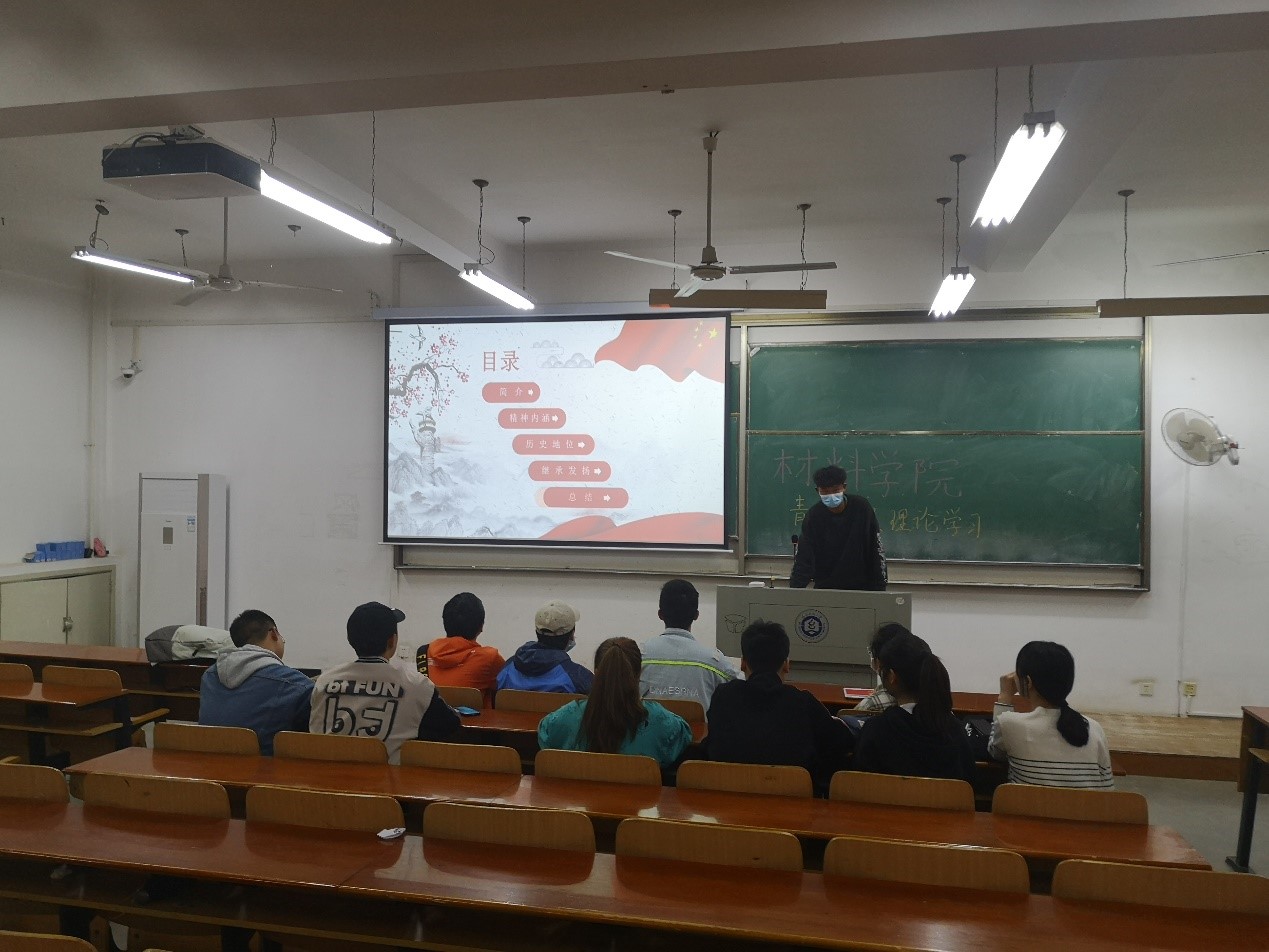 活动从红色革命精神这个大主题引入,分别由胡义龙、裴凌威、杨珩、刘从杨、姜鑫、张枭和张力凡七名同志向大家分享了红船精神、长征精神、延安精神、沂蒙精神、苏区精神、井冈山精神和西柏坡精神。一个个生动的红色经典故事,传递出丰富的精神内涵,让从未经历过残酷战争的同学们了解在战火纷飞的革命战争年代,革命先辈们用流血牺牲铸造成的红色革命精神。