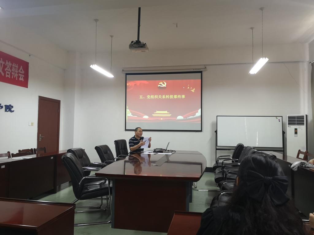随后,毛老师组织毕业生党员学习了党员关系转接流程和相关要求,并针对大家提出的问题做了讲解。要求各位同志务必认真核实自己的介绍信抬头和接收单位,按流程和规范办理党组织关系转接。
