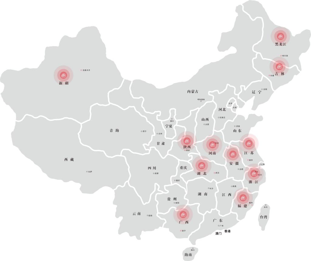江苏宿迁、新疆阿拉尔、广西钦州等七大基地。