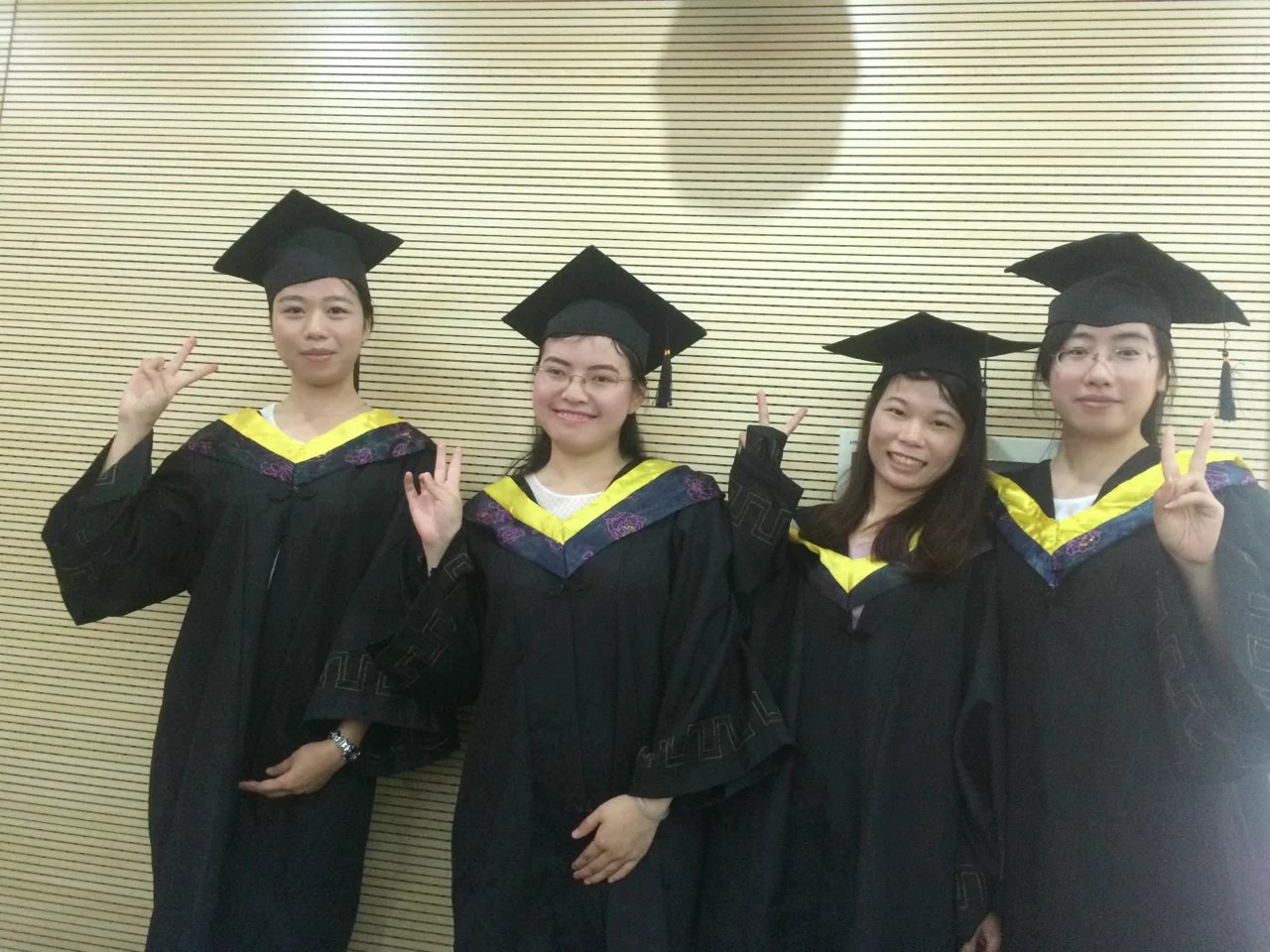 师者,所以传道受业解惑也!四年里,我记住了每一位上过课的老师,从基础课到专业课,从实验课到实践实习。您们从课堂的精心准备的专注到手把手教做实验的耐心,时刻诠释着纺大“崇真尚美”的精神,“崇真”教人求真,“尚美”教育我们成为品德高尚的人。大学者,非有大楼之谓也,有大师之谓也!一直觉得自己是一个非常幸运的人,一路的成长与进步都有如此优秀负责的老师指引。感谢黄多米老师和张辉老师亦师亦友的几年,对我的鼓励与帮助。感谢班主任李沐芳和熊维佳老师在大学规划的指引,感谢专业课黄乐平、赵三平、陈少华等老师给我专业知识的传授、姜明老师给我考研方向的指引。还有最后阶段毕业设计指导老师刘欣老师。一切的一切犹如昨日,很遗憾今天还未有所成就,但是希望自己在科研这条路上坚持走下去,也像各位恩师一样成为品德高尚且孜孜不倦追求学术的人。