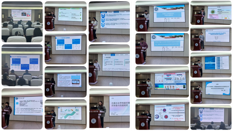 论坛现场,来自高分子材料创新班的20支参赛团队依次登台,同学们通过PPT汇报、数据论证等方式,全面呈现了项目的研究背景、创新点、实验过程及应用前景。以严谨的科研态度、清晰的逻辑表达和大胆的创新思维,展现了扎实的专业基础和较强的实践能力。